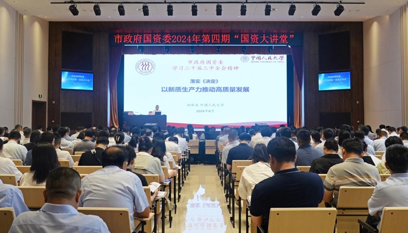 黨的二十屆三中全會(huì)擘畫(huà)了進(jìn)一步全面深化改革、推進(jìn)中國(guó)式現(xiàn)代化建設(shè)的新藍(lán)圖,黨中央、省委、市委要求切實(shí)抓好黨的二十屆三中全會(huì)精神的學(xué)習(xí)宣傳和貫徹落實(shí)。8月13日上午,市政府國(guó)資委在鄭州水務(wù)集團(tuán)有限公司智慧水務(wù)中心舉辦2024年第四期“國(guó)資大講堂”,邀請(qǐng)中國(guó)人民大學(xué)黨委常委、副校長(zhǎng)鄭新業(yè)教授圍繞《學(xué)習(xí)黨的二十屆三中全會(huì)精神 以新質(zhì)生產(chǎn)力推動(dòng)高質(zhì)量發(fā)展》作專題輔導(dǎo)。