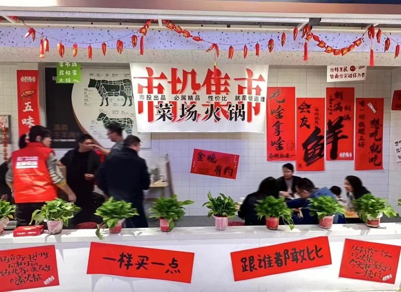 為全方位滿足廣大顧客菜市場吃火鍋體驗(yàn)需求,市投集市未來路市場設(shè)立火鍋專區(qū),引入火鍋品類商戶,現(xiàn)有商戶全員參加,免費(fèi)提供火鍋鍋底和餐具,顧客可根據(jù)個(gè)人喜好進(jìn)行搭配和調(diào)整,創(chuàng)造出豐富多樣的火鍋料理。